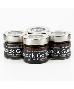 Паста Black Garlic Premium из чёрного ферментированного чеснока 170 гр., четыре штуки в упаковке.