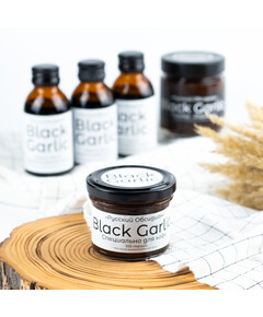 Гастрономический дуэт: Жидкий чёрный ферментированный чеснок Black Garlic и Паста Black Garlic Premium из чёрного ферментированного чеснока 70 гр