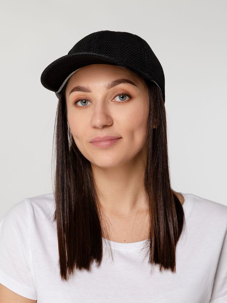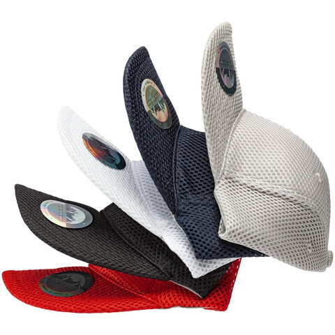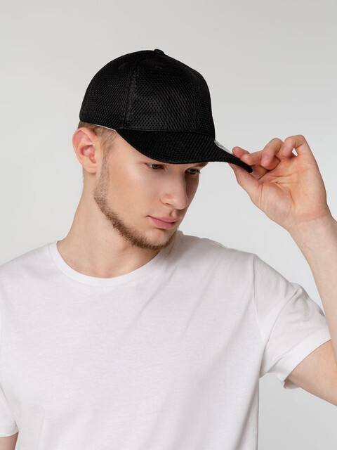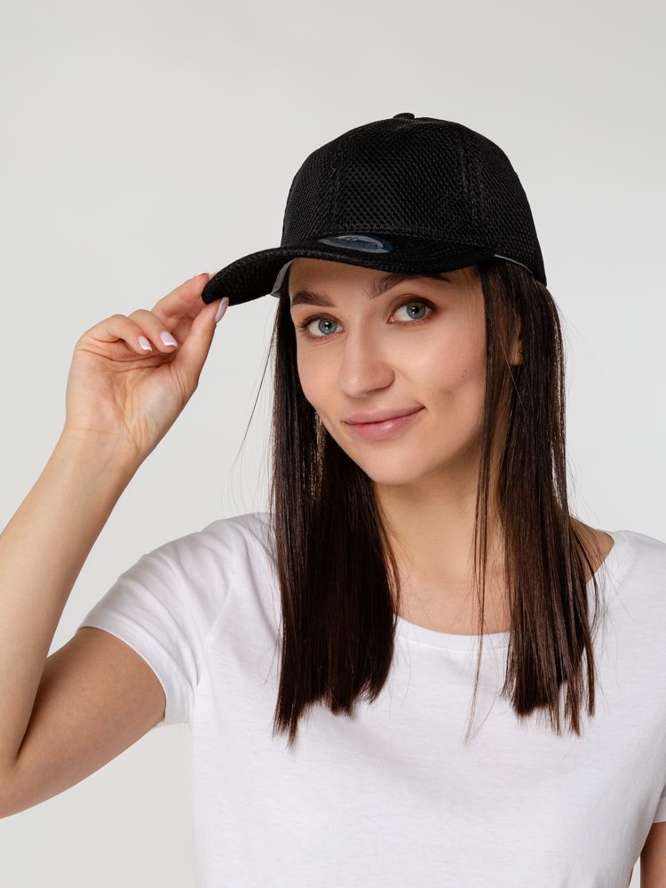 Однотонная бейсболка из спортивной сетки Шесть клиньев, со швом на лбу Обшивные люверсы Вшивная эластичная резинка вместо застежки