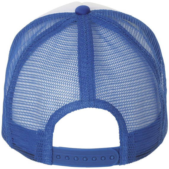 Бейсболка с 5 клиньями из сетки. Поролон в переднем клине (5 мм) и козырьке (3 мм). Регулируемая пластиковая застежка.