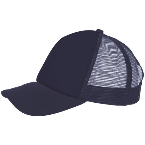 Бейсболка с 5 клиньями из сетки. Поролон в переднем клине (5 мм) и козырьке (3 мм). Регулируемая пластиковая застежка.