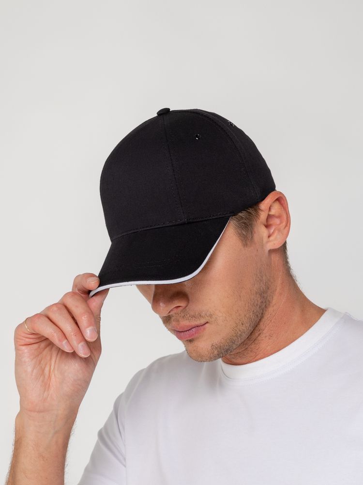 Бейсболка Canopy, черная с белым кантом