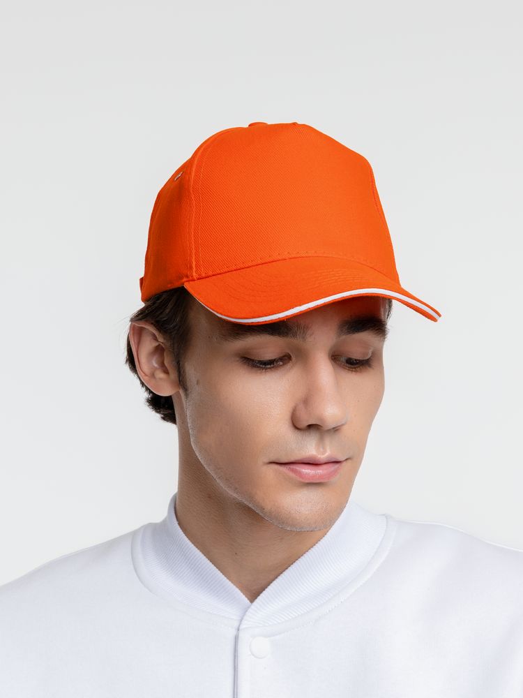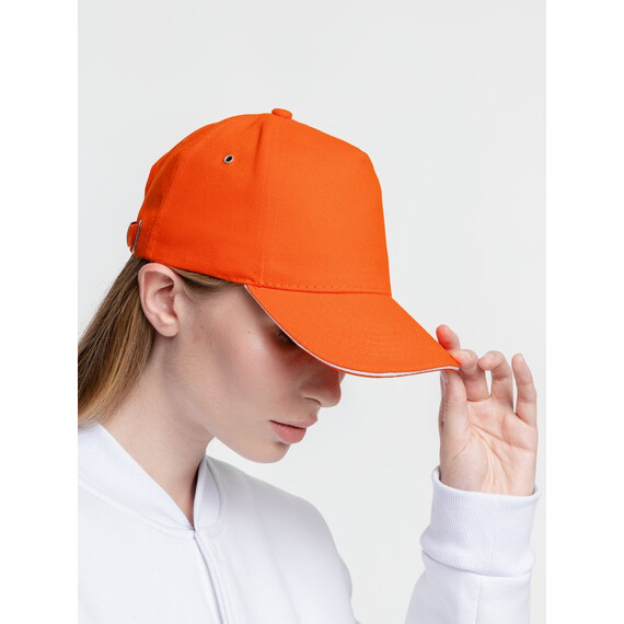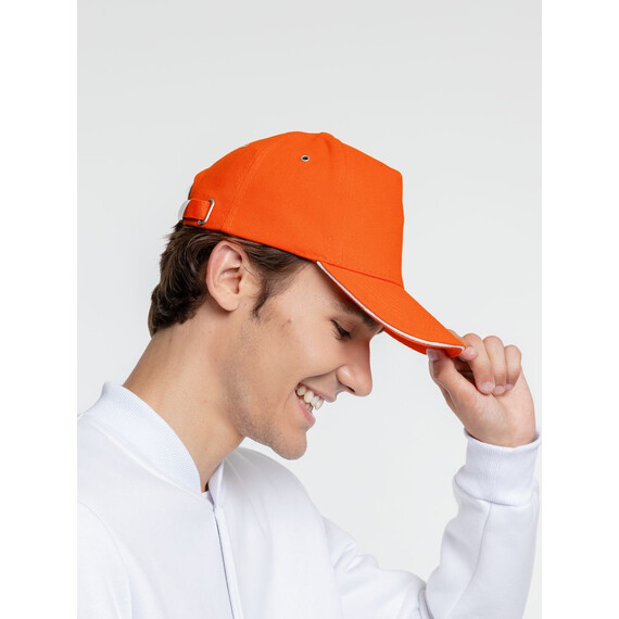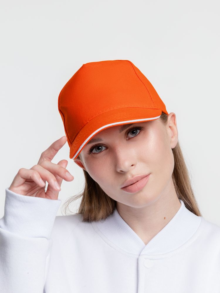 Бейсболка Classic, оранжевая с белым кантом