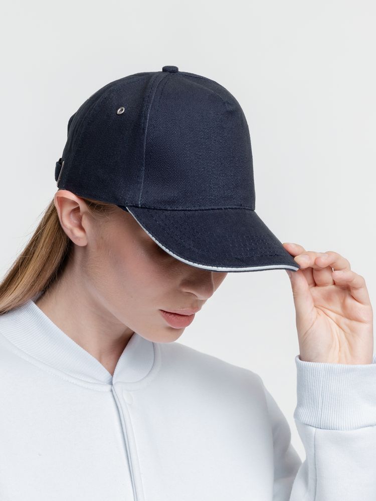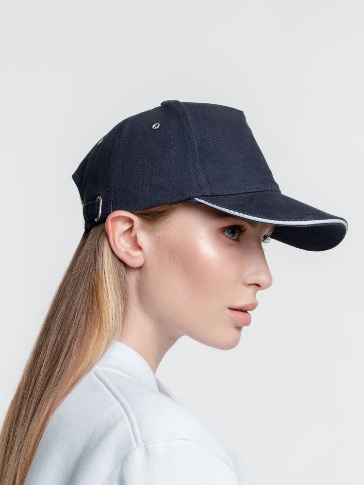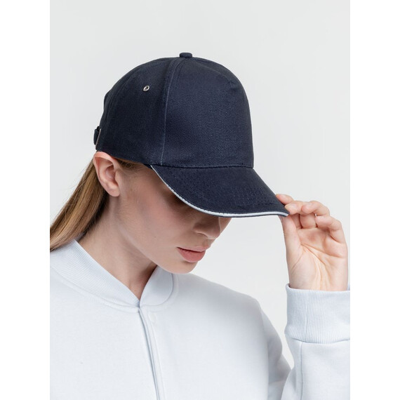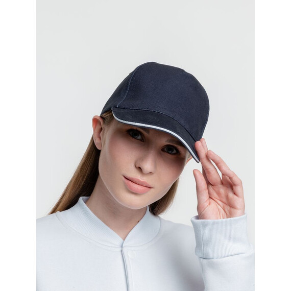 Бейсболка Classic, темно-синяя с белым кантом