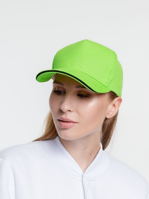 Бейсболка Classic, зеленое яблоко с черным кантом