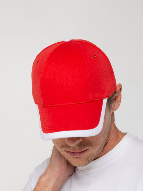 Удобная модель с шестью клиньями без шва на лбу. Широкий контрастный кант на козырьке.
