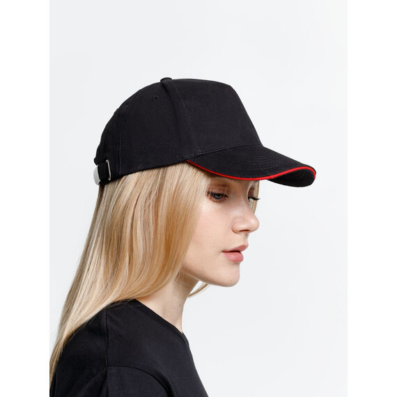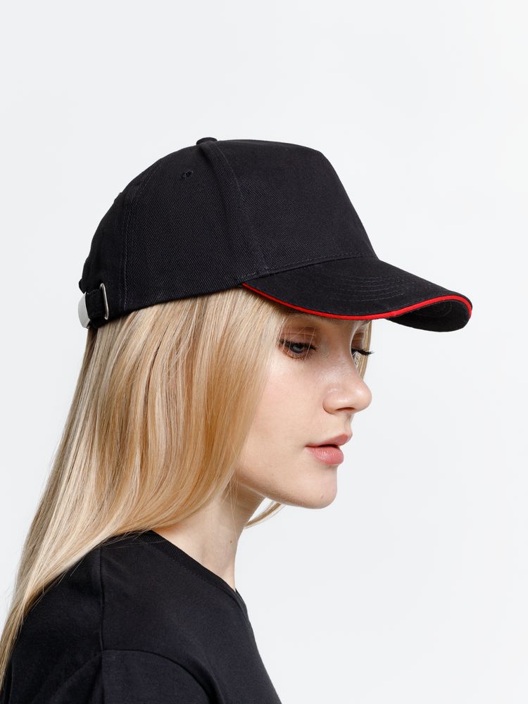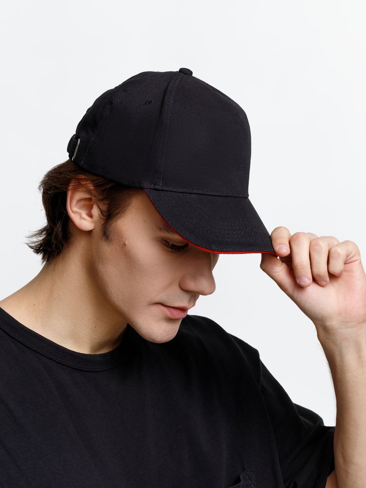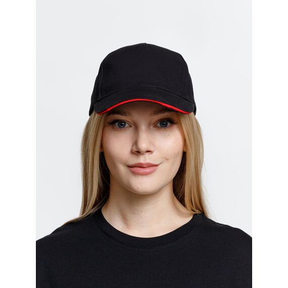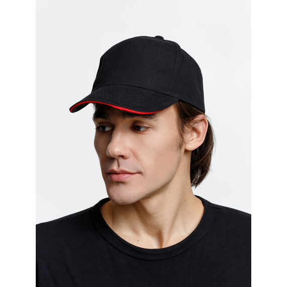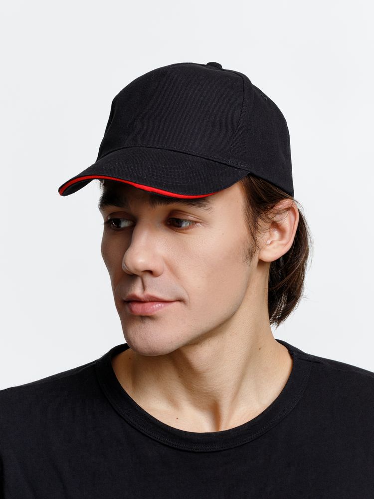 Бейсболка Long Beach, черная с красным
