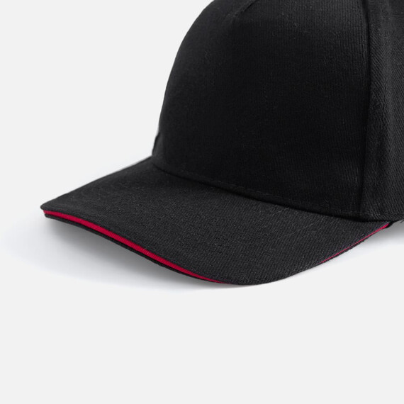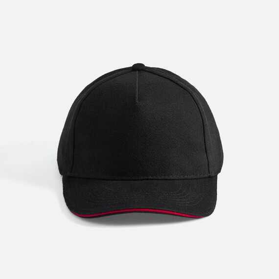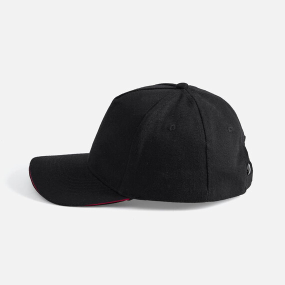 Модель бейсболки с 5-ю клиньями без лобового шва из плотного чесаного хлопка.