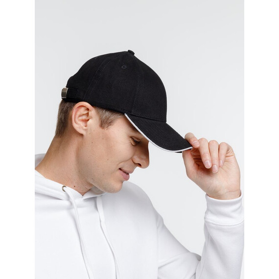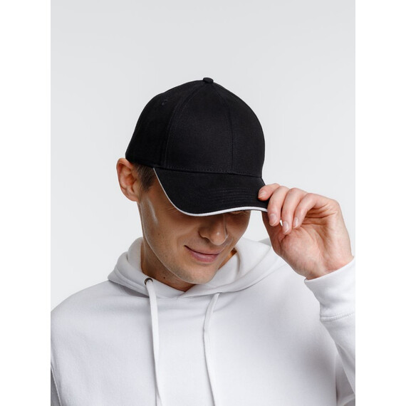 - Плотный козырек-сэндвич с контрастной вставкой