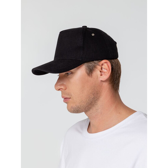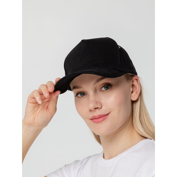 Минималистичная бейсболка с закругленным козырьком и большим местом для нанесения логотипа.