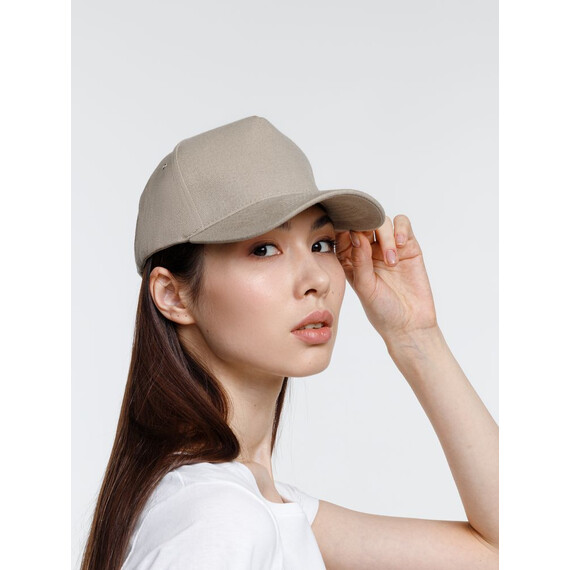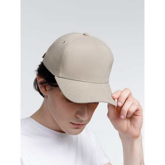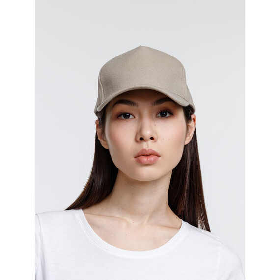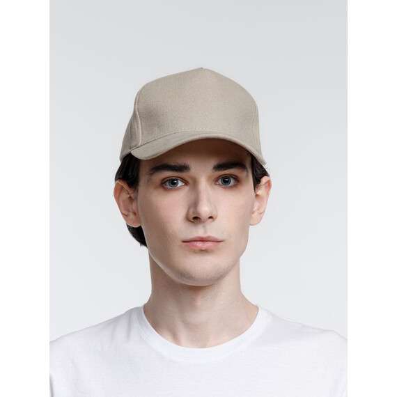 Минималистичная бейсболка с закругленным козырьком и большим местом для нанесения логотипа.