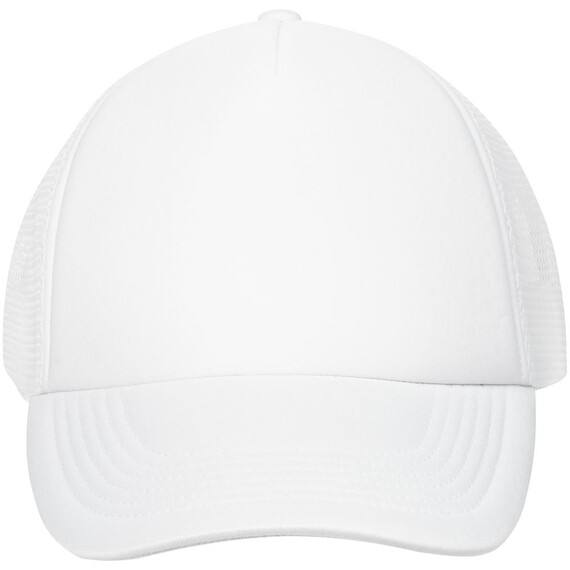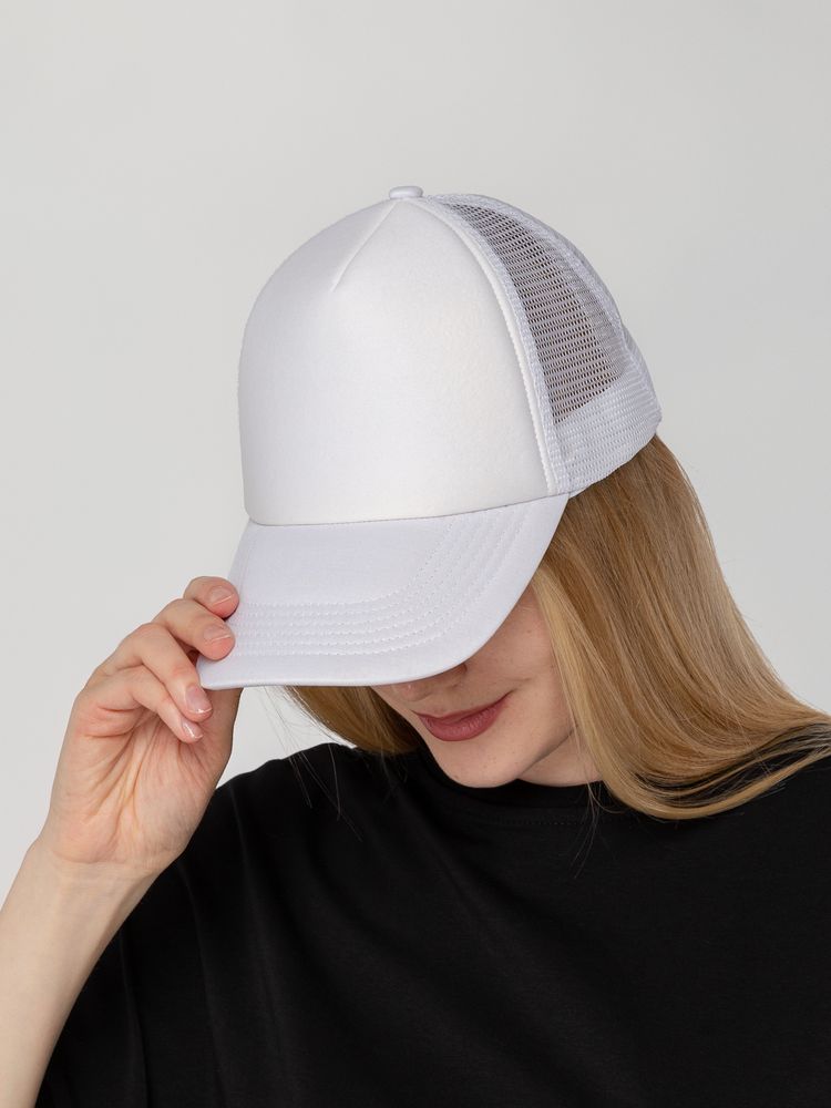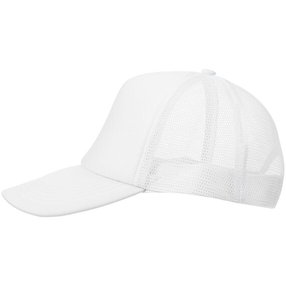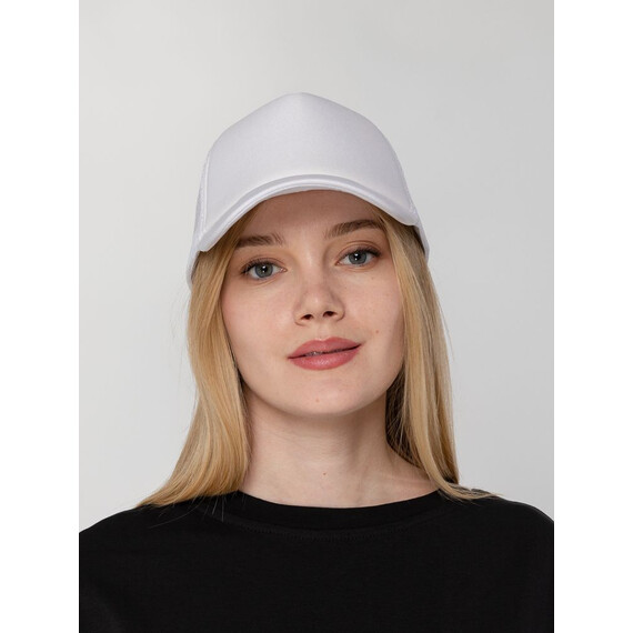 Стандартная модель с 5 клиньями без лобового шва в нестандартном исполнении. Передний клин и козырек выполнены из полиэстера с наполнителем из поролона, боковые и задние клинья — из сетки. Размер регулируется с помощью пластиковой застежки.