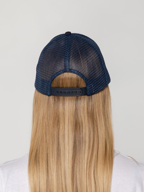 Стандартная модель с 5 клиньями без лобового шва в нестандартном исполнении. Передний клин и козырек выполнены из полиэстера с наполнителем из поролона, боковые и задние клинья — из сетки. Размер регулируется с помощью пластиковой застежки.