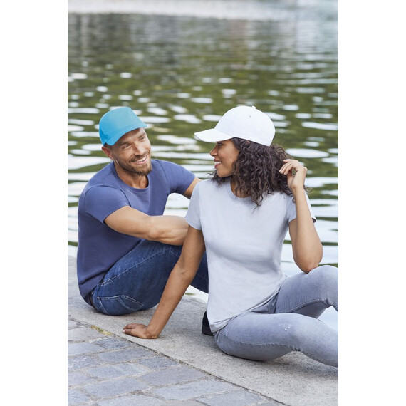 Легкий хлопок с начесом, жесткий козырек. Бейсболка из 5 клиньев без шва на лбу. 4 отверстия с вышивкой для вентиляции, регулируемая застежка на липучке сзади.