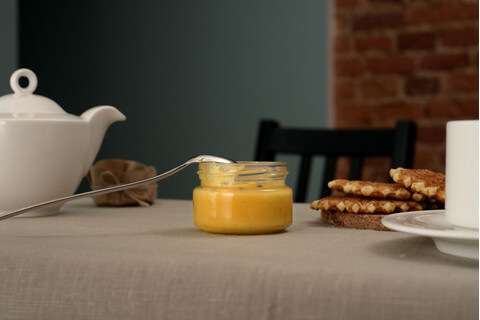 Взбитый мед, собранный с цветочного разнотравья и бережно перемешенный с ягодами облепихи, — вкусное и полезное лакомство. Ягоды облепихи широко известны как натуральный источник витаминов. Высокое содержание серотонина стабилизирует центральную нервную систему. Кроме того, облепиха славится высокими бактерицидными и заживляющими свойствами.