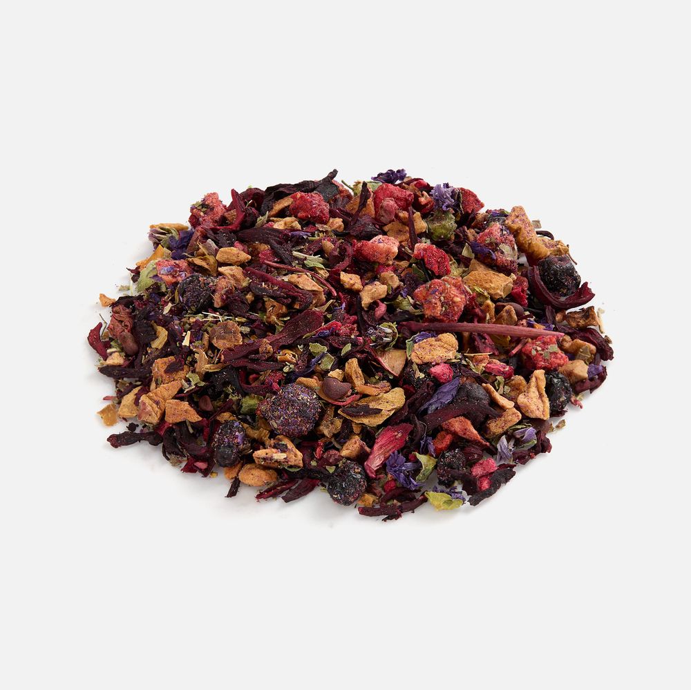 • Состав: каркаде, кусочки яблок, ягоды брусники сублимированные, ягоды черники сублимированные, кусочки малины сублимированные, кусочки клубники сублимированные, цветы мальвы, лист ежевики, ароматизатор черники и малины.