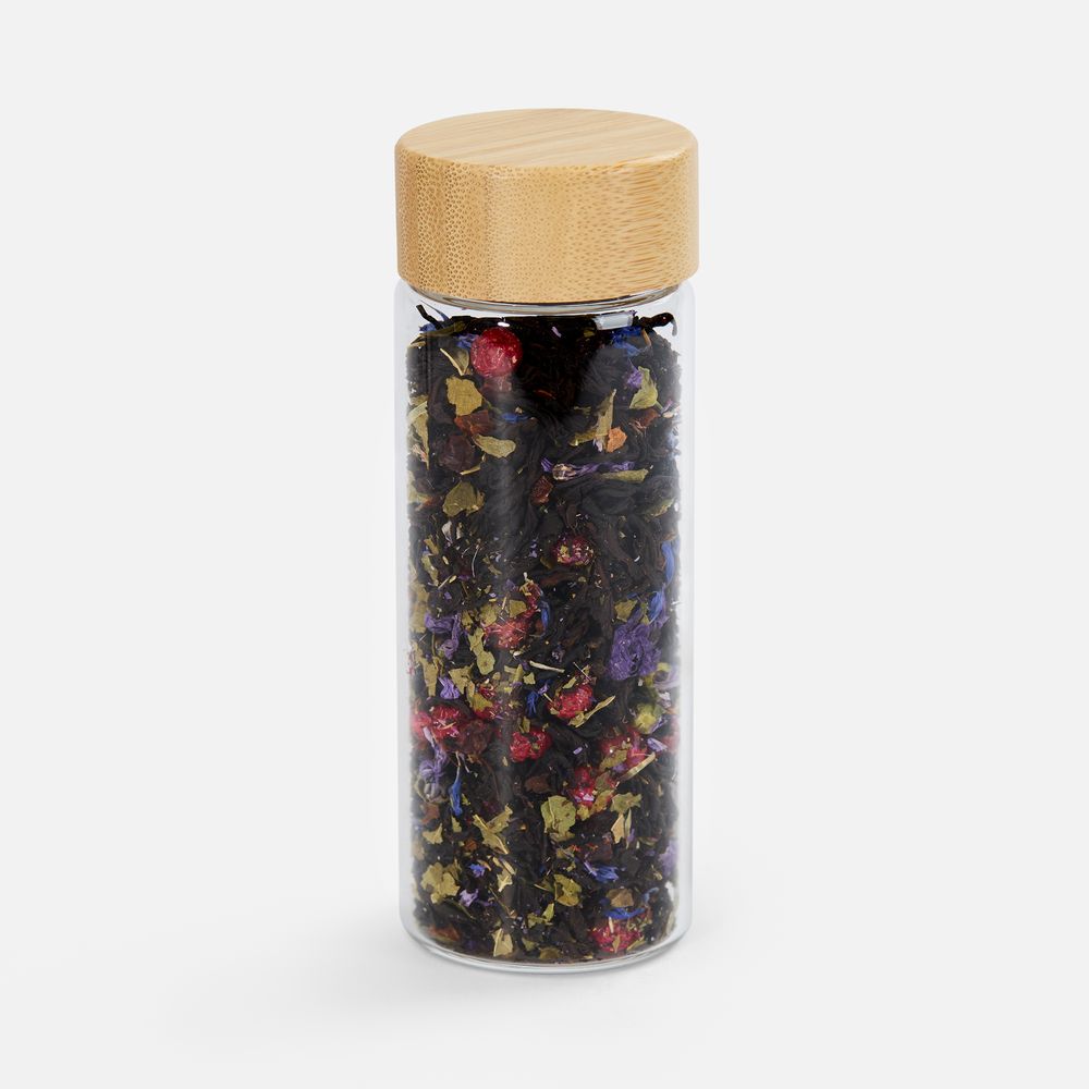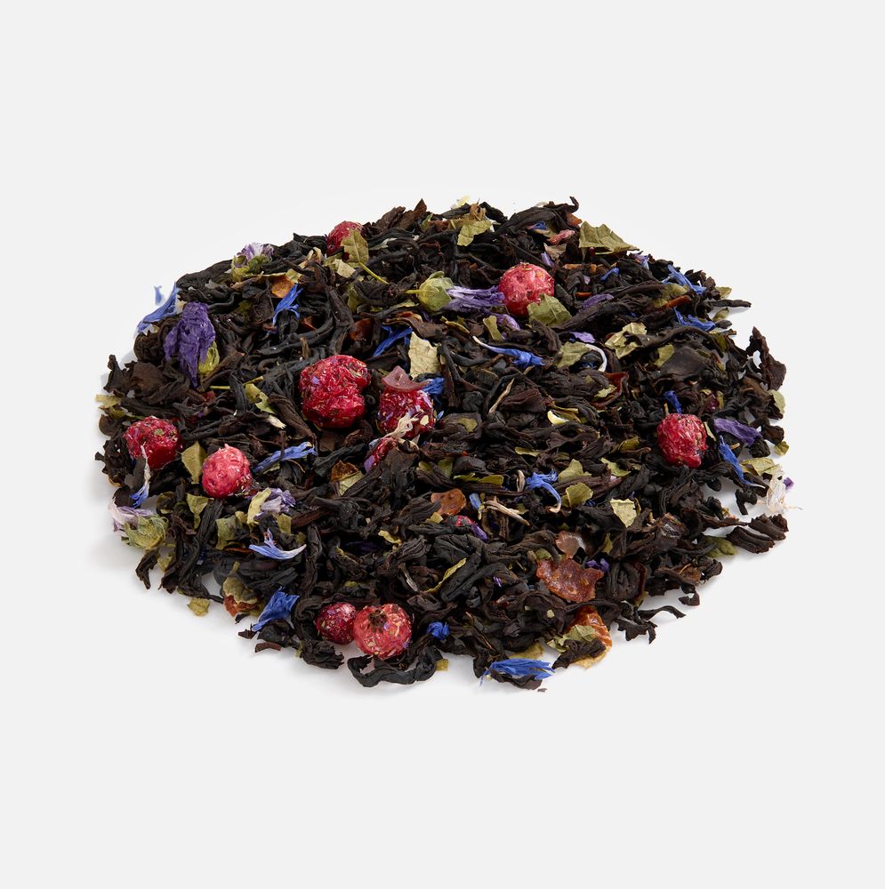 • Состав: чай черный индийский листовой OPА Assam , ягоды красной смородины сублимированные, листья смородины, лепестки василька, цветы мальвы, кусочки шиповника, ароматизатор «черная смородина»