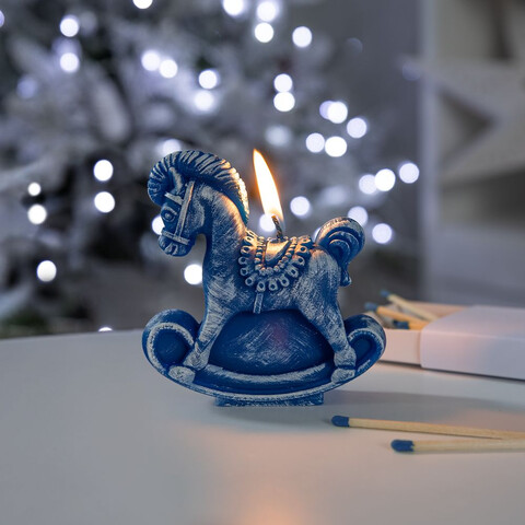Свеча фигурная «Лошадка-качалка», синяя