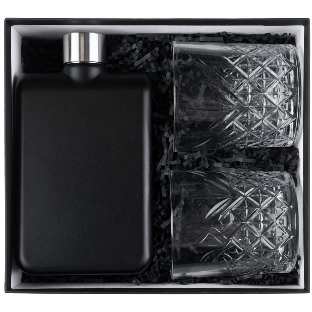 Стильная и практичная фляга вместе с элегантными стаканами станет прекрасным подарком для ценителей такого напитка, как виски. Благодаря матовой поверхности флягу особенно приятно держать в руке. Резной стакан удобной формы позволяет в полной мере насладиться вкусом, цветом и ароматом напитка. Емкость фляги 473 мл.