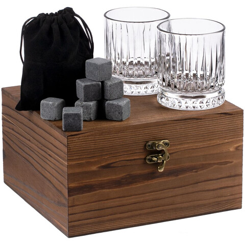 Набор Rock and Cold — стильный подарок для ценителей виски: два рельефных стакана с толстым дном и охлаждающие камни для идеальной подачи любимого крепкого напитка.