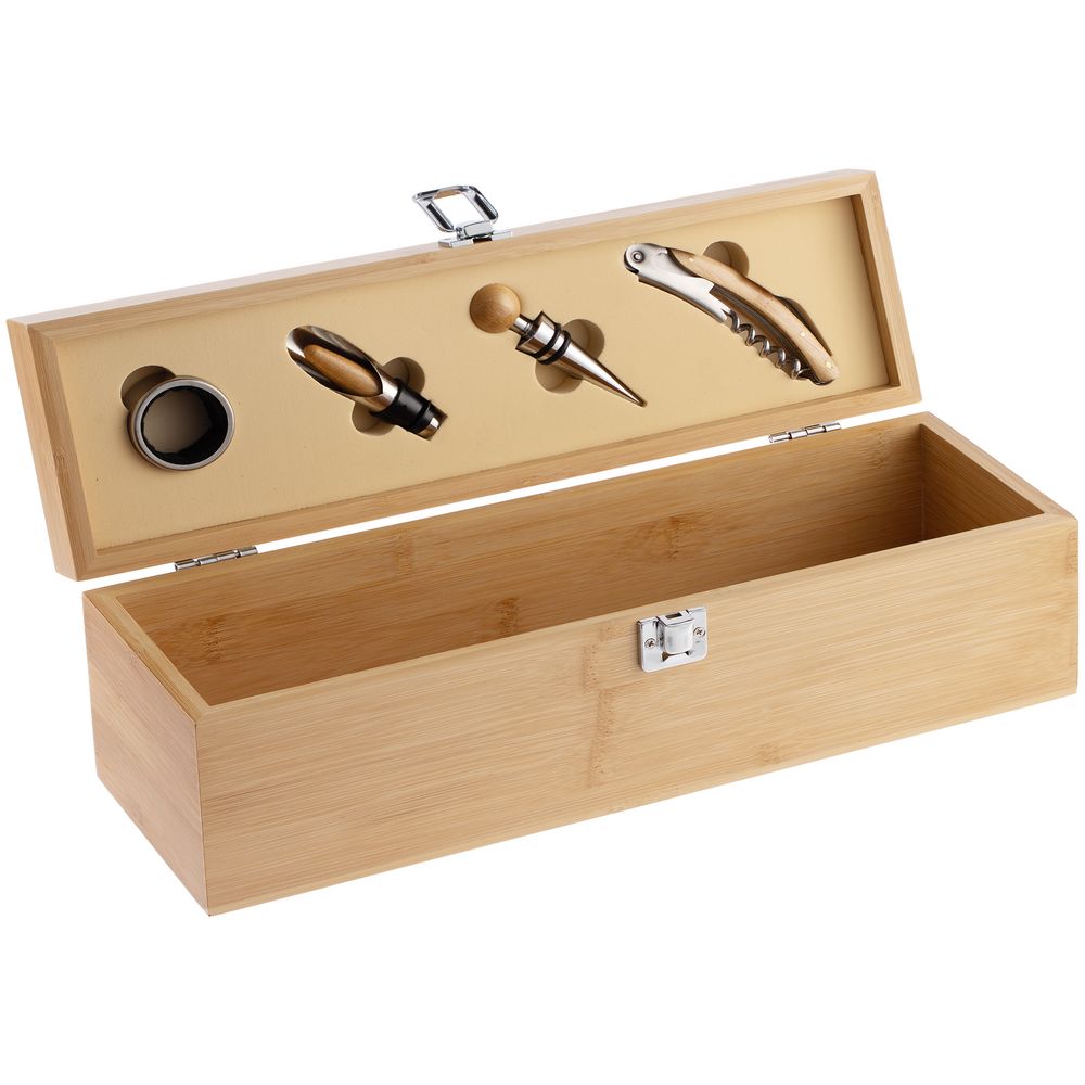 Набор для вина Vinotech с футляром для бутылки — оригинальный и функциональный подарок. Штопор поможет бережно и без усилий откупорить бутылку, а чтобы вино не расплескалось и не оставило пятен, пригодится кольцо-каплеуловитель, надетое на горлышко открытой бутылки: так капли не будут стекать на стол или скатерть. Аэратор поможет аромату вина раскрыться, а винная пробка сохранит свежесть и вкус напитка еще некоторое время после откупоривания бутылки.В наборе: