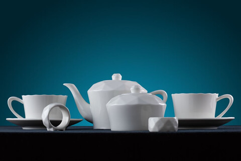 Линейка столовой посуды Diamante Bianco — настоящий бриллиант коллекции Altavolo. Структура и пропорции граней чайника в точности повторяют верхнюю часть бриллианта классической огранки — корону. Присмотритесь — и вы увидите, как играет свет на молочно-белом фарфоре.