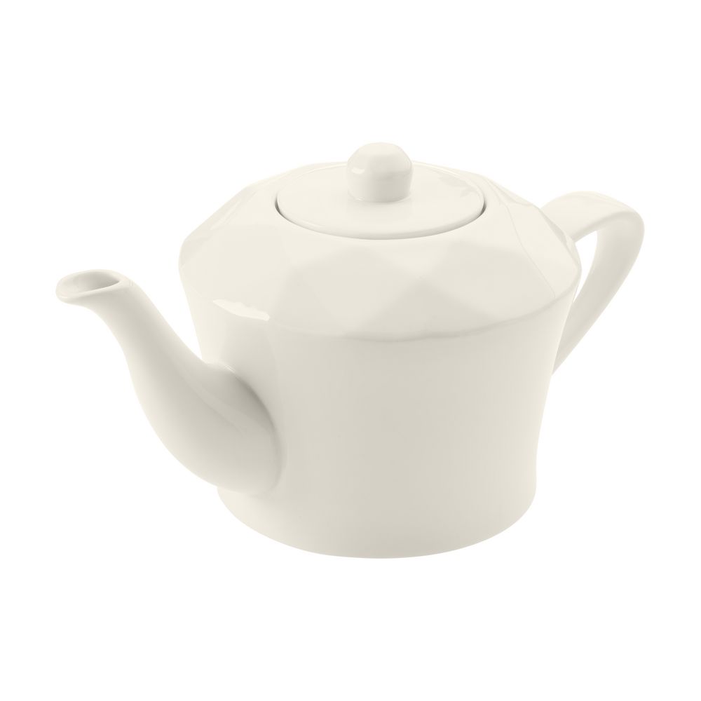 Линейка столовой посуды Diamante Bianco — настоящий бриллиант коллекции Altavolo. Структура и пропорции граней чайника в точности повторяют верхнюю часть бриллианта классической огранки — корону. Присмотритесь — и вы увидите, как играет свет на молочно-белом фарфоре.Емкость 600 мл.