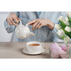 Емкость чайника 420 мл, емкость чашки 260 мл. Поставляется в белой транспортной коробке.