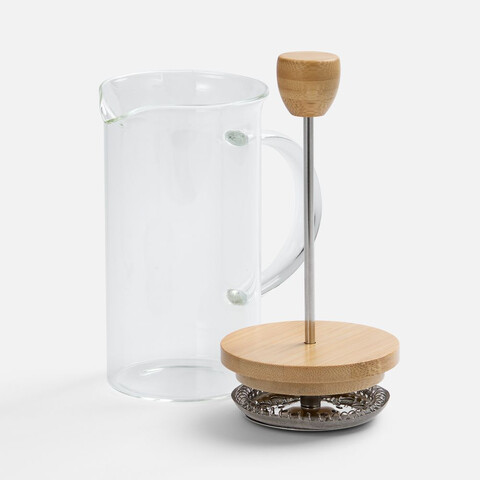 Френч-пресс с изящным сочетанием прозрачного боросиликатного стекла и натурального дерева станет стильным акцентом на кухне.
