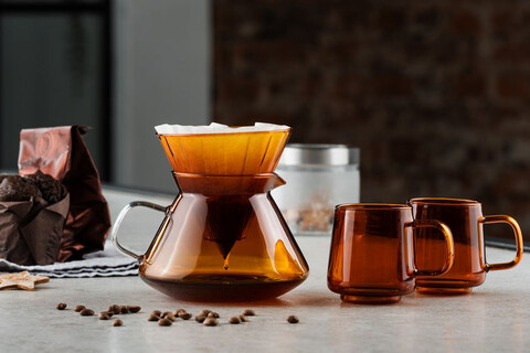 Элегантный кофейный набор Force Nexus добавит эстетики кофе-брейку и порадует ценителей своим изысканным современным исполнением. Благодаря тонкому боросиликатному стеклу кружки, воронка и кофейник Force Nexus очень легкие, а янтарный цвет привлекает внимание и добавляет теплоты.