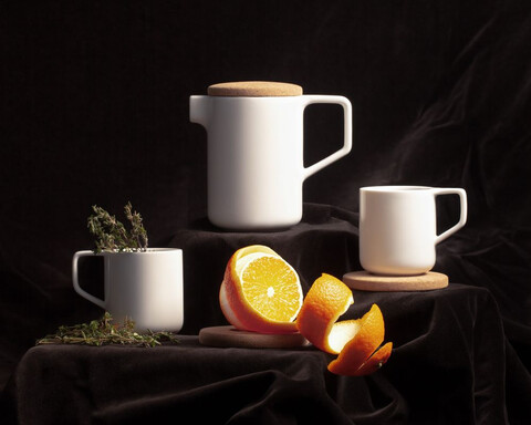 Отвлечься от повседневной суеты за чашечкой горячего чая или ароматного кофе особенно приятно с коллекцией Riposo. Продуманная функциональность и яркий контраст текстурной пробки и гладкого молочно-белого фарфора — для тех, кто следит за последними тенденциями и всегда выбирает комфорт.В набор входит: