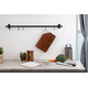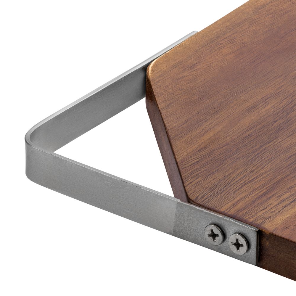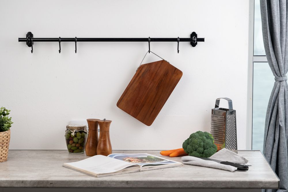 Качественная разделочная доска — необходимый предмет на любой кухне. Доска выполнена из прочного материала — древесины акации. Она обладает высокой твердостью, водоотталкивающими свойствами. Для удобства размещения на стене в верхнем углу предусмотрен подвес из металла.Доска поставляется в пакете.