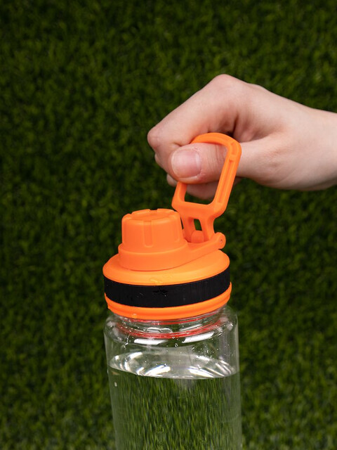 Большая бутылка с откручивающейся крышкой отверстия для питья и ручкой-петлей для переноски. Наполнить всего пару раз — и дневная норма воды будет выпита.