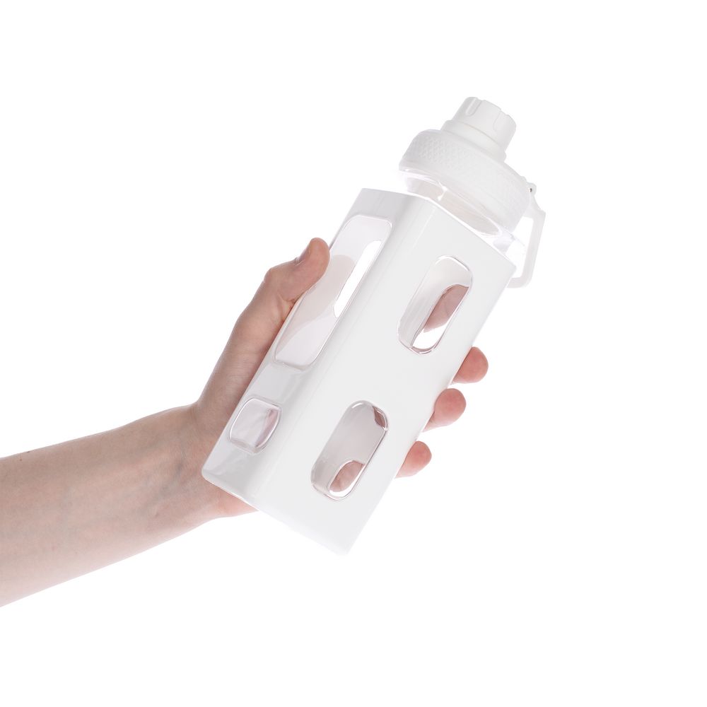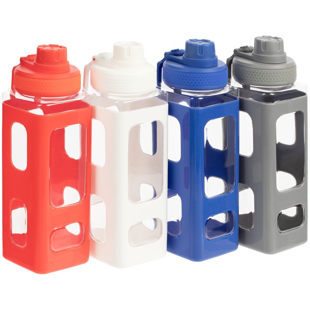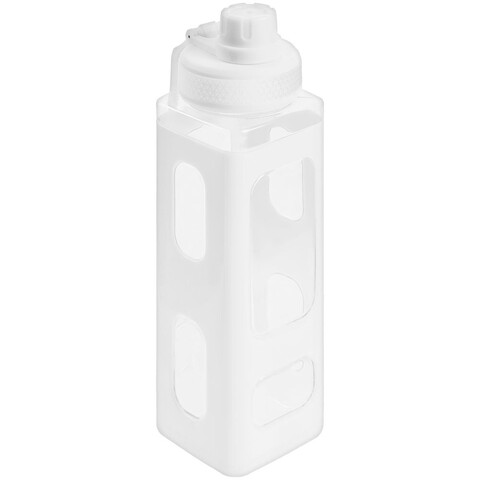 Вместительная квадратная бутылка для воды. Прозрачные окошки позволяют визуально оценить, сколько жидкости осталось внутри.