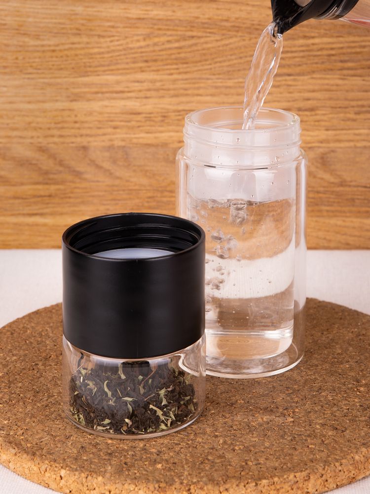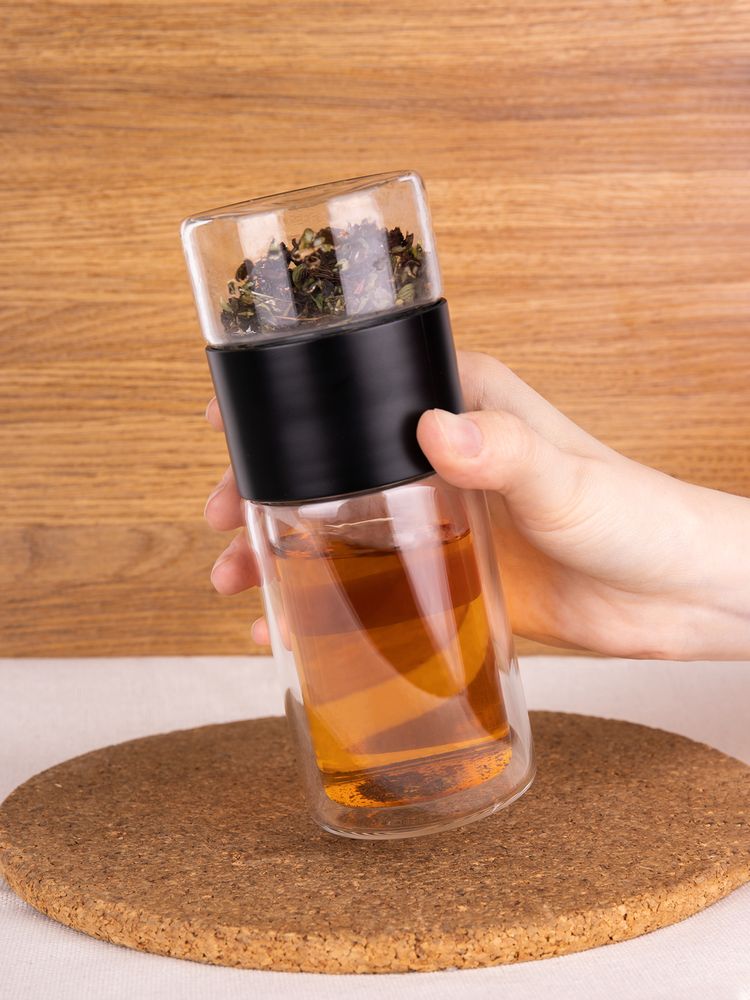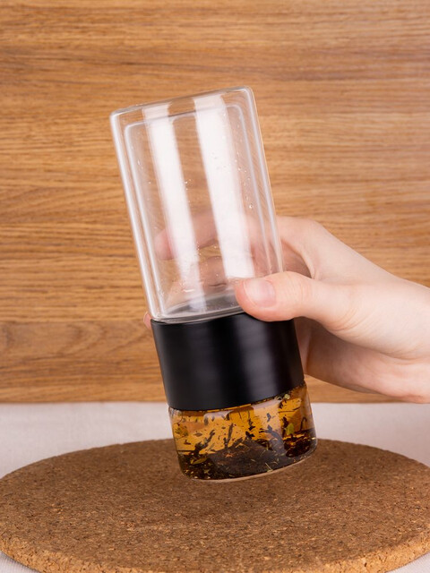 Благодаря конструкции с двумя отсеками, разделенными сетчатым фильтром, можно остановить процесс заваривания в любой момент — просто перевернув бутылку. Так настой не получится слишком крепким, а чайный лист получится залить кипятком еще несколько раз, имитируя традиционный способ заваривания проливами. Объема получившегося напитка как раз хватит на стандартную офисную кружку (около 300 мл).