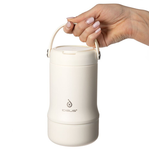 Tabenodo — универсальный многофункциональный термос для работы, школы, похода и путешествия. В компактном корпусе разместились ложка, тарелка и емкость для любимого блюда. Матовая поверхность приятна на ощупь, а силиконовая ручка удобна для переноски.