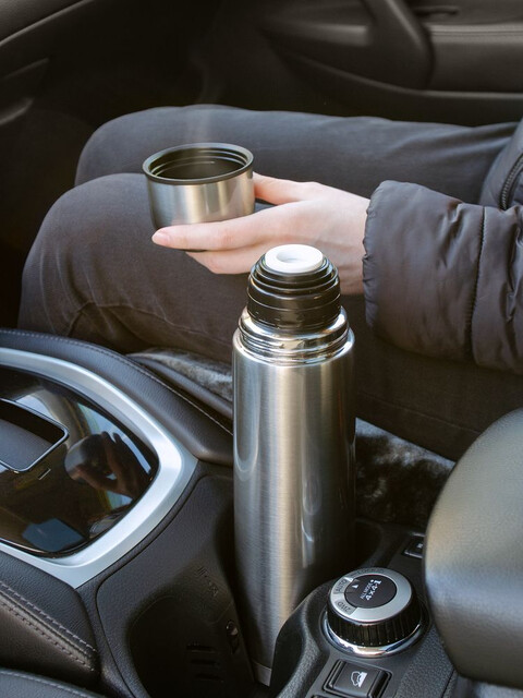 Двухслойная вакуумная конструкция из нержавеющей стали с завинчивающейся пробкой с клапаном.