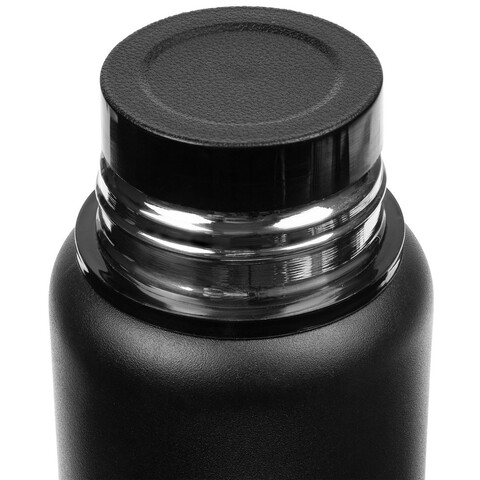 Термос в строгом металлическом корпусе с вакуумной изоляцией. Завинчивающаяся пробка, крышка-чашка и ситечко для фильтрации — удобно заваривать чай или кофе. Напиток останется горячим, а чаинки не попадут в чашку.