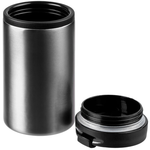 Двухслойная конструкция из пищевого пластика внутри и нержавеющей стали снаружи. Герметичная завинчивающаяся крышка с откидным клапаном для питья.