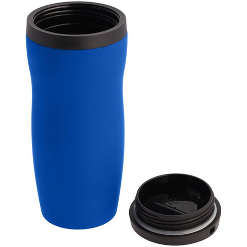 Двухслойная конструкция из нержавеющей стали снаружи и пищевого пластика внутри. Герметичная завинчивающаяся крышка с откидным клапаном для питья. Покрытие софт-тач. В отверстие в крышке можно вставить шнурок для удобного ношения стакана на руке. Шнурок в комплект не входит.