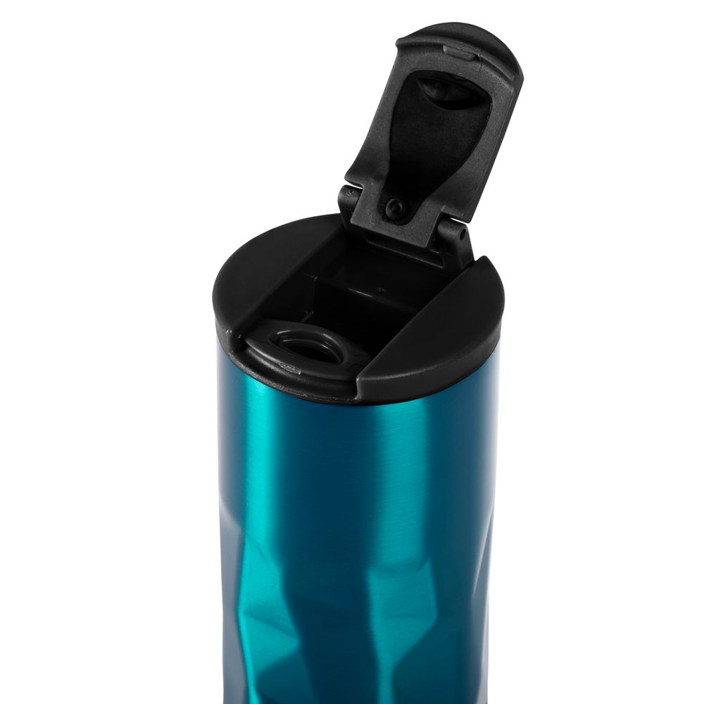 Двухслойная вакуумная конструкция из нержавеющей стали внутри и снаружи, герметичная завинчивающаяся крышка с откидным клапаном для питья.