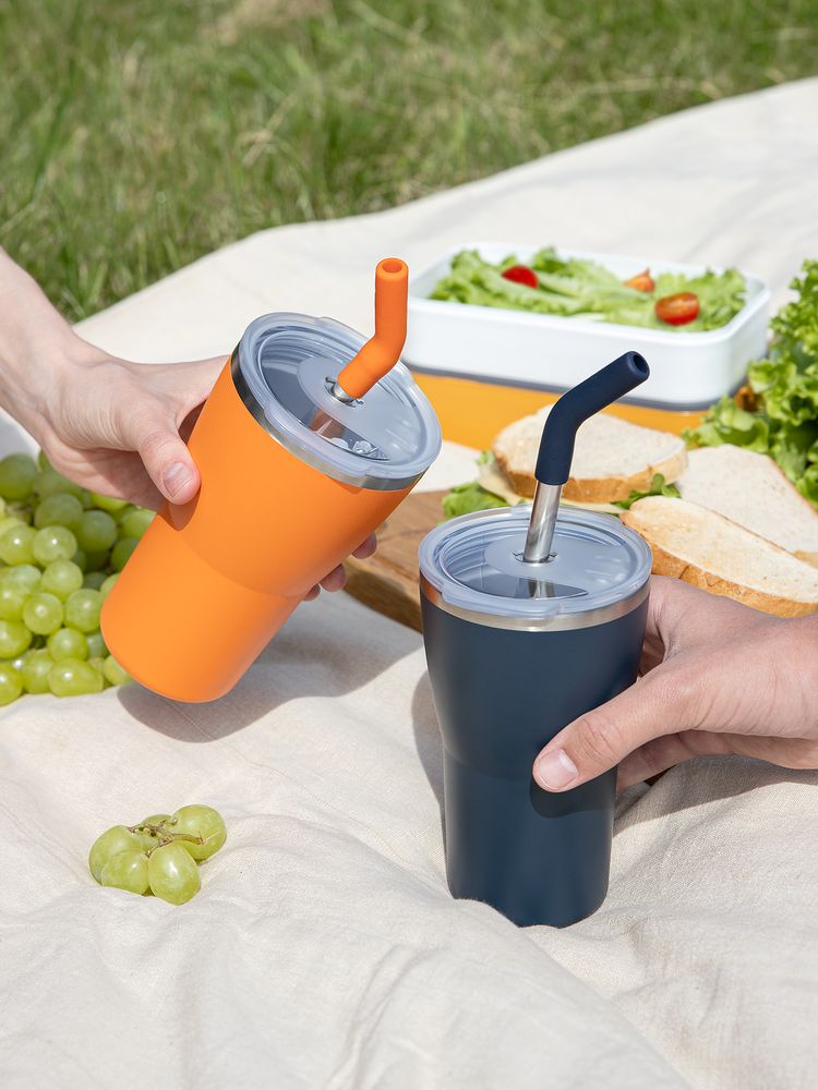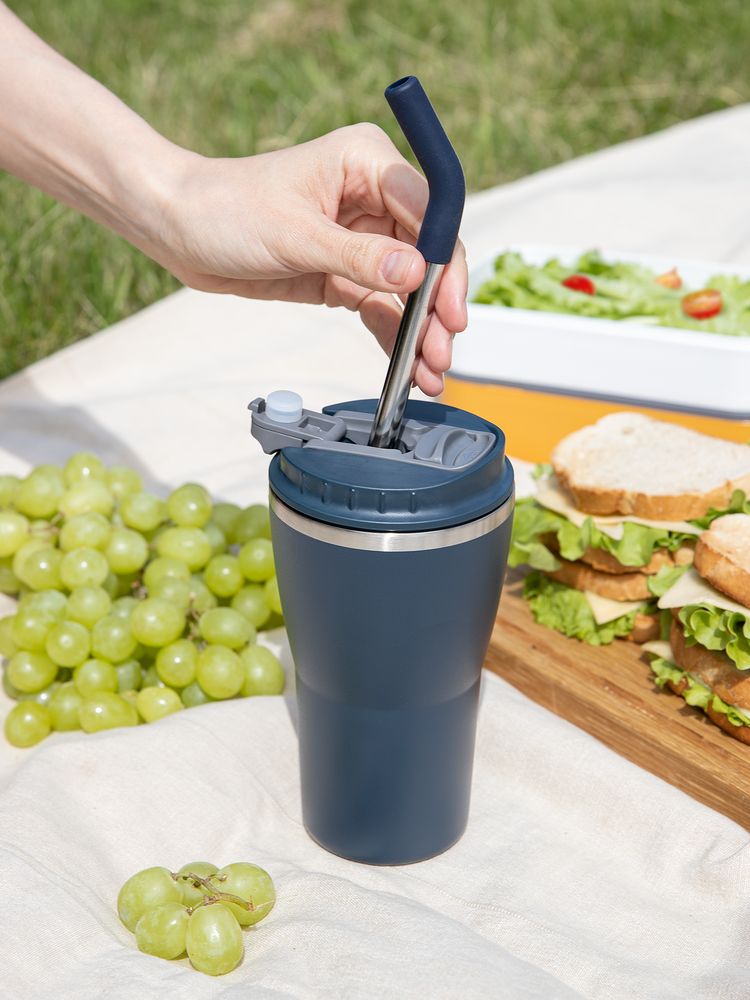 • 2 крышки в комплекте: одна на 100% герметичная с механизмом блокировки отверстия для питья, вторая — с отверстием для трубочки