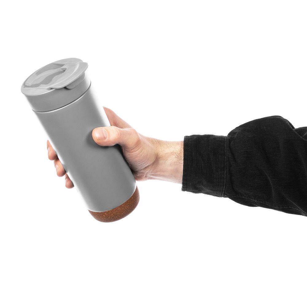 Контраст текстурной пробки на дне и матового покрытия делают термостакан Steady не только практичным, но и стильным подарком.