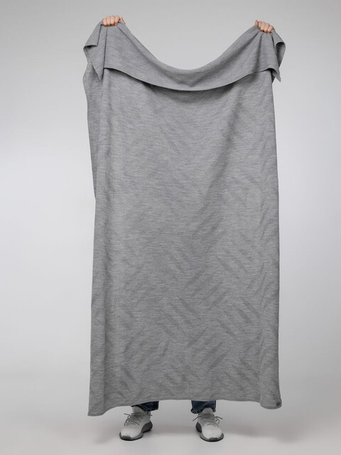 У пледа с таким рисунком две большие целевые аудитории. Одна — компании, работающие в тяжелой промышленности, другая — все остальные. Согласитесь, довольно мало тех, кто не считает свою работу тяжелой!Плед с рельефным рисунком, обернут вязаной лентой.