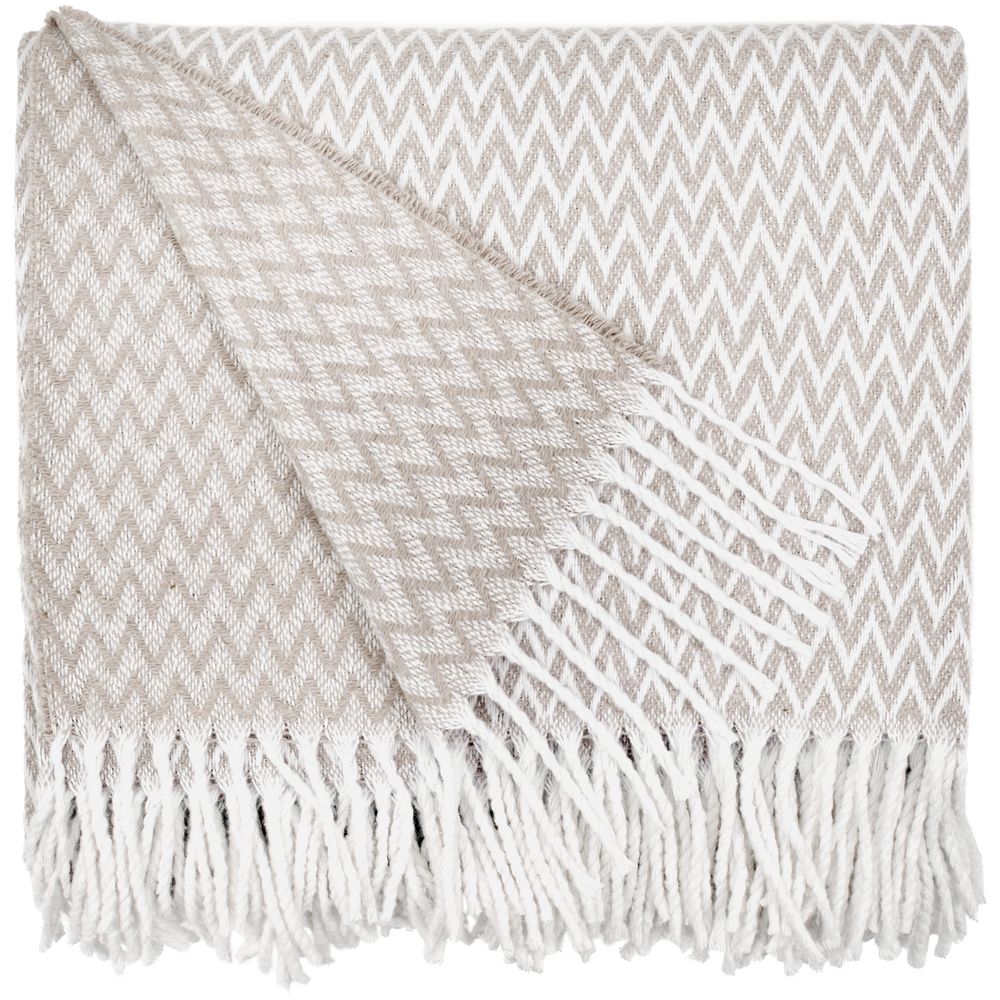 Плед Sagunt с ненавязчивым зигзагообразным узором и аккуратной бахромой подарит мгновения уюта и радости, порадует своим нежным дизайном и окутает теплом.