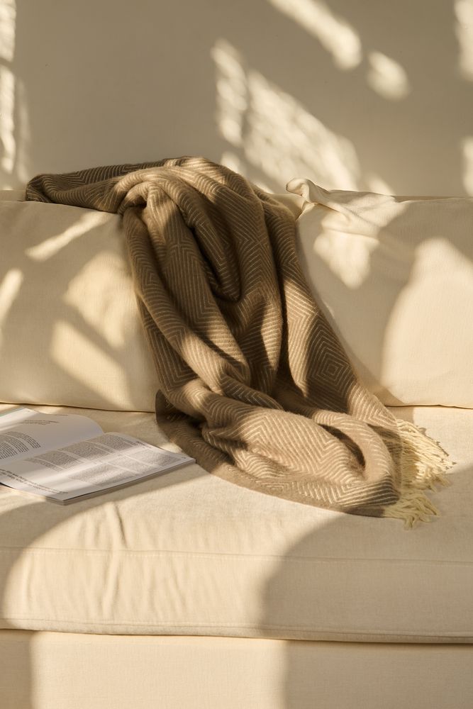Плед «Тренто» выполнен из шерсти мериноса с добавлением нейлона — легкий, воздушный и очень теплый.