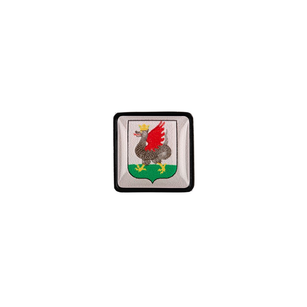 Металлический шильдик с объемной наклейкой под смолой с изображением герба одного из 14 крупных городов Российской Федерации — простой и элегантный способ показать региональную принадлежность компании, обозначить расположение филиалов или напрямую обратиться к клиентам из определенного города.