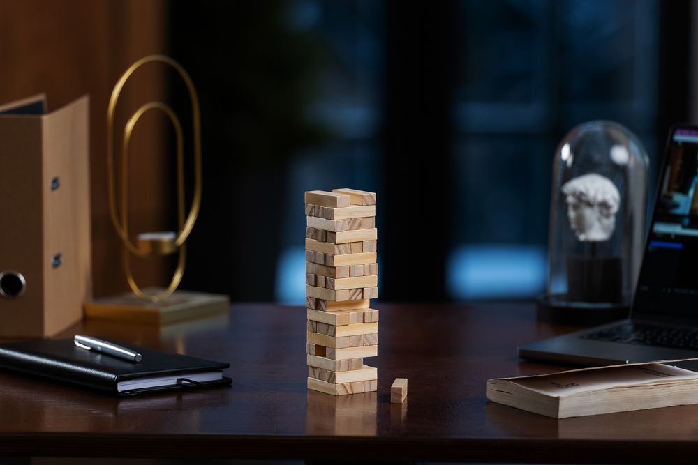 Второе название игры — «Падающая башня». Сначала строится башня: по три брусочка в ряд, каждый слой перпендикулярен предыдущему. Затем игроки по очереди вытаскивают по одному брусочку и кладут его на верх сооружения. Тот игрок, кто обрушит башню, проиграл. Игра тренирует ловкость, внимание, терпение и пространственное мышление, что очень важно и в бизнесе. Так что подарок не только развлечет, но и может стать символом-пожеланием.