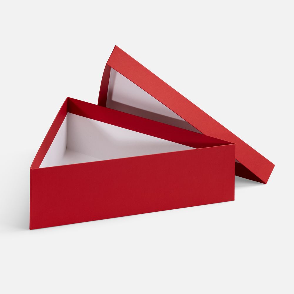 Нетипичная форма коробки привлекает внимание и может сделать подарок более запоминающимся. Треугольник ассоциируется с динамичностью, оригинальностью и креативностью, что может стать важным элементом позиционирования.