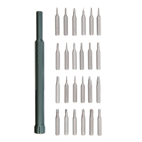 В комплекте магнитный держатель и 24 биты: